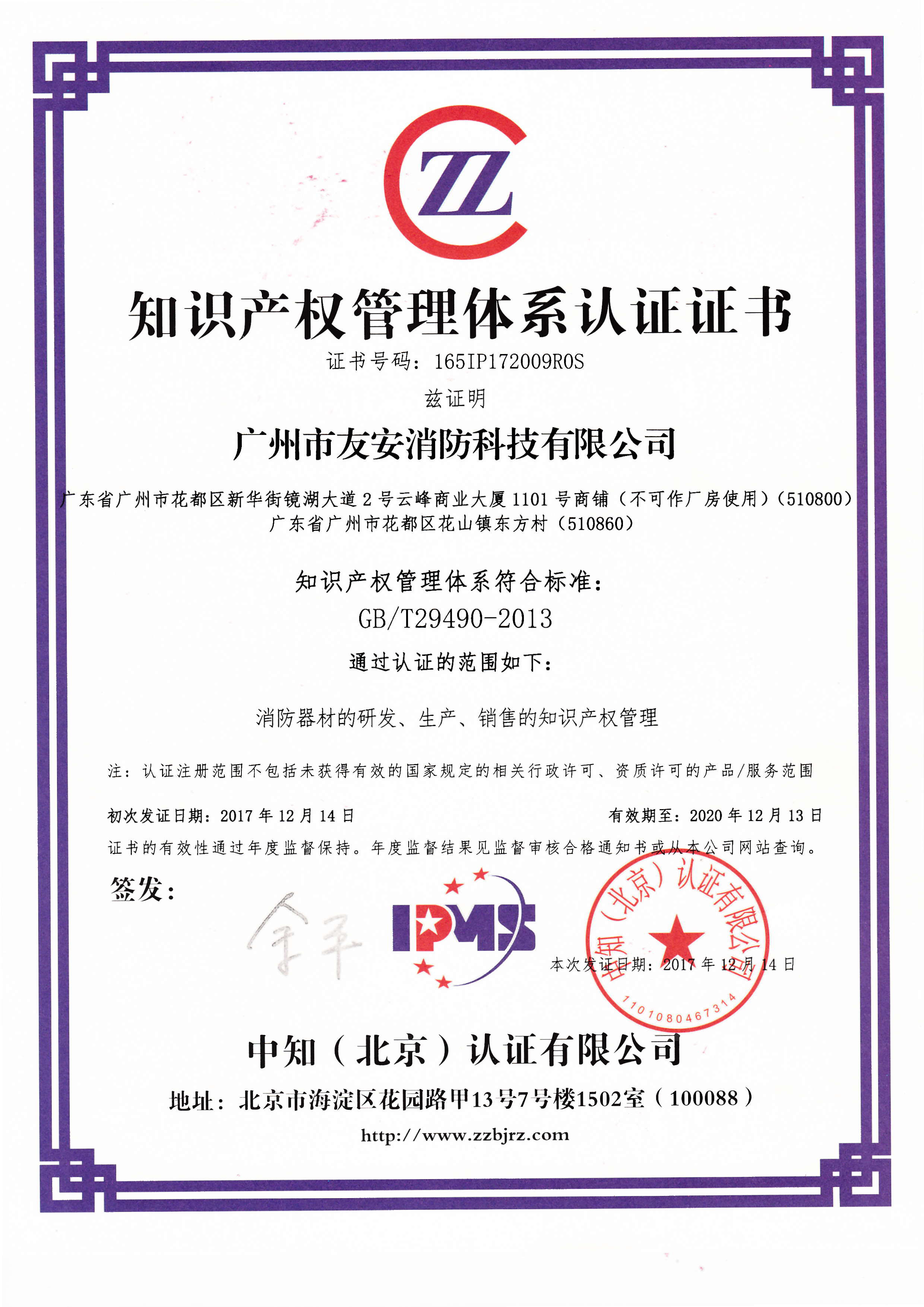 2017年12月14日,廣州市友安消防科技有限公司完成試運行、內(nèi)審、管理評審、模擬外審等一系列考核程序后,在公司領(lǐng)導(dǎo)的高度重視和各部門的共同努力下,審核工作得到有序開展并順利通過,成功獲頒知識產(chǎn)權(quán)管理體系認(rèn)證證書,標(biāo)志著“友安消防”在知識產(chǎn)權(quán)規(guī)范化管理、知識產(chǎn)權(quán)運用、知識產(chǎn)權(quán)風(fēng)險防范等方面邁上新臺階。