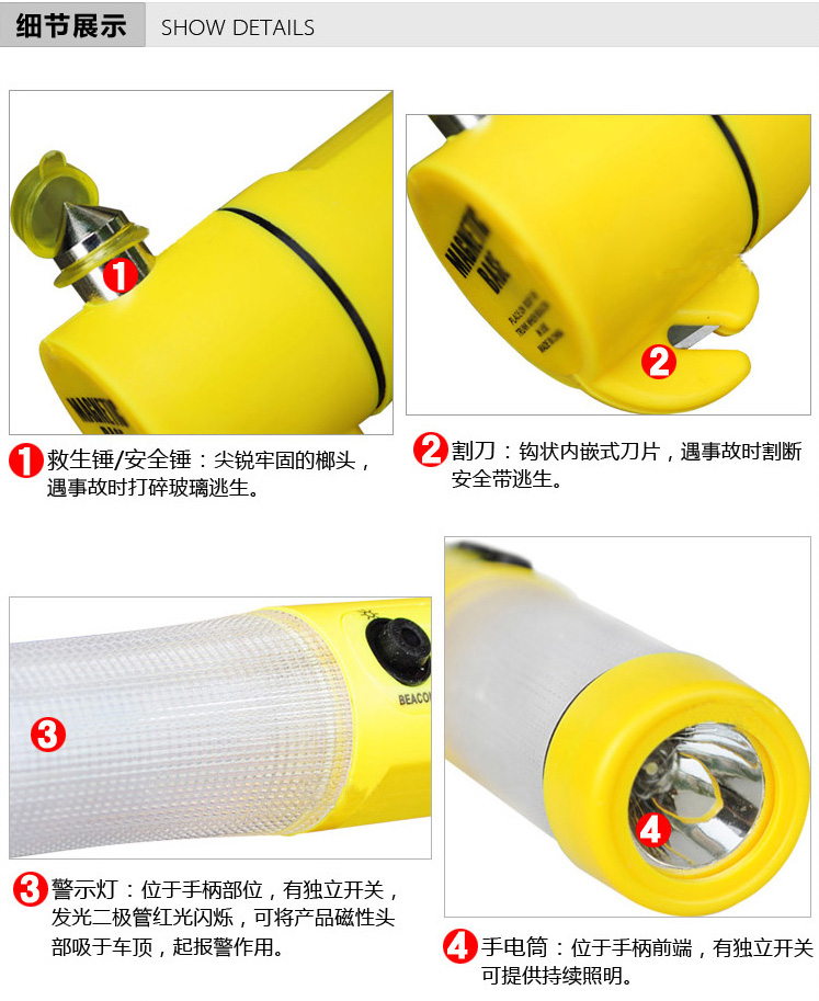 產品名稱:逃生錘(綜合型黃色多功能)