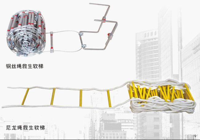 逃生軟梯適用于政府機(jī)關(guān)、部隊、公安、機(jī)場、輪船、賓館、住宅樓、辦公室、公司、工廠、商場、娛樂場所、銀行、礦山、礦井、電力等企事業(yè)單位發(fā)生火災(zāi)或事故時,必需的逃生和救援裝備。